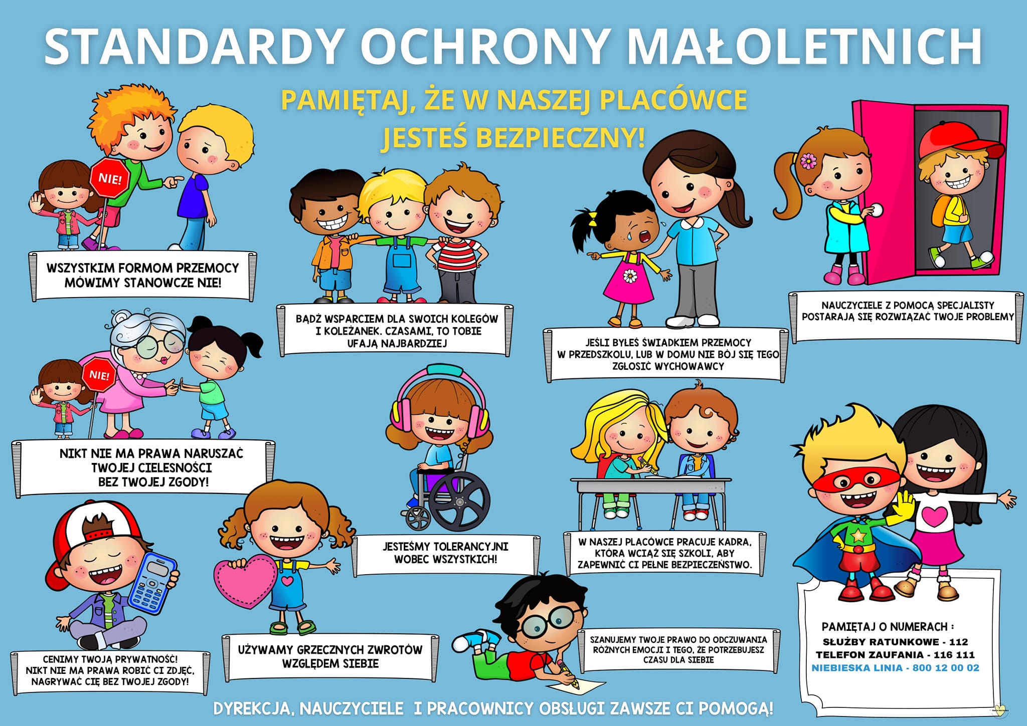 Od 15 lutego w naszej placówce również zaczynają obowiązywać standardy ochrony małoletnich czyli zbiór zasad, które pomagają tworzyć bezpieczne i przyjazne środowisko w szkołach, przedszkolach i innych placówkach działających na rzecz dzieci.